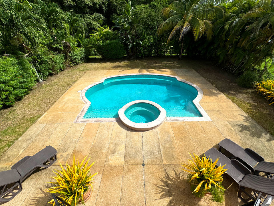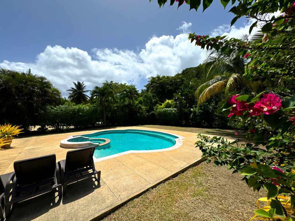 The highlight of this retreat is undoubtedly its inviting pool, where cooling off under the Caribbean sun becomes a daily pleasure. The landscaped yard surrounding the villa offers ample space for outdoor activities, whether it's a barbecue gathering under the starlit sky or children playing freely in the sunshine.